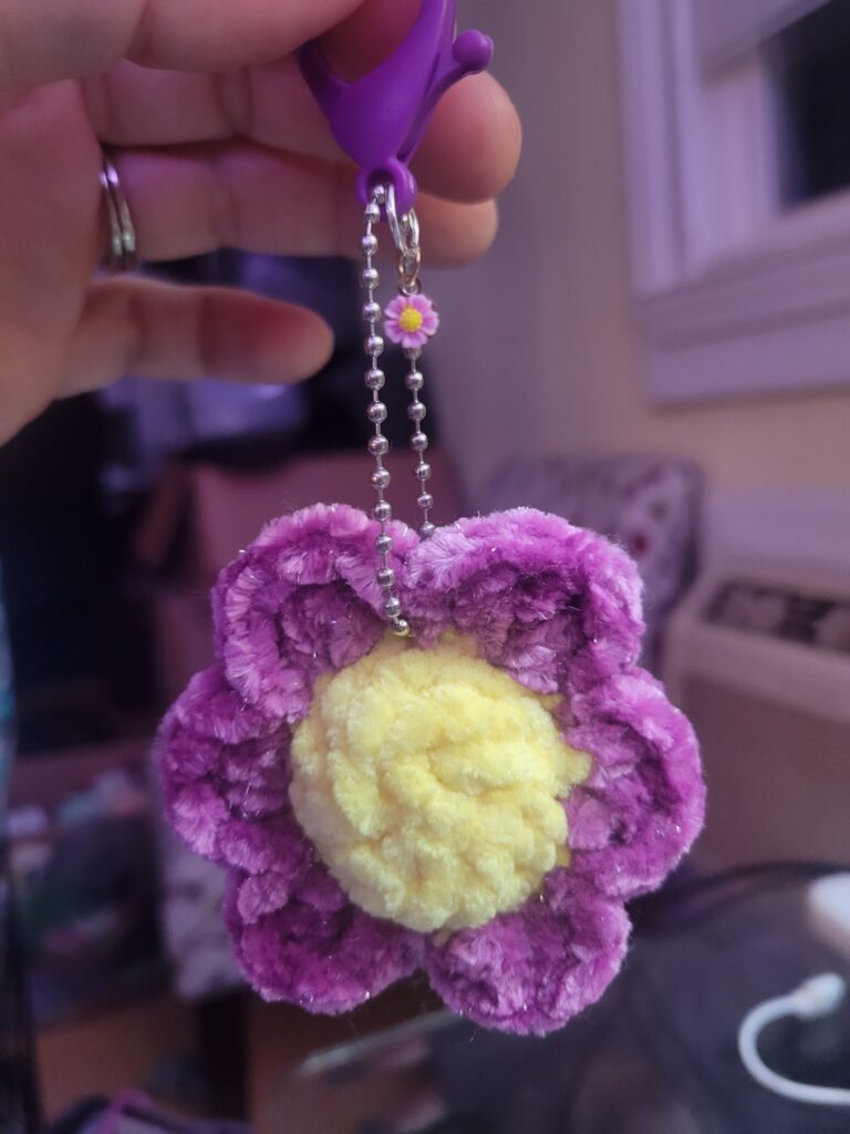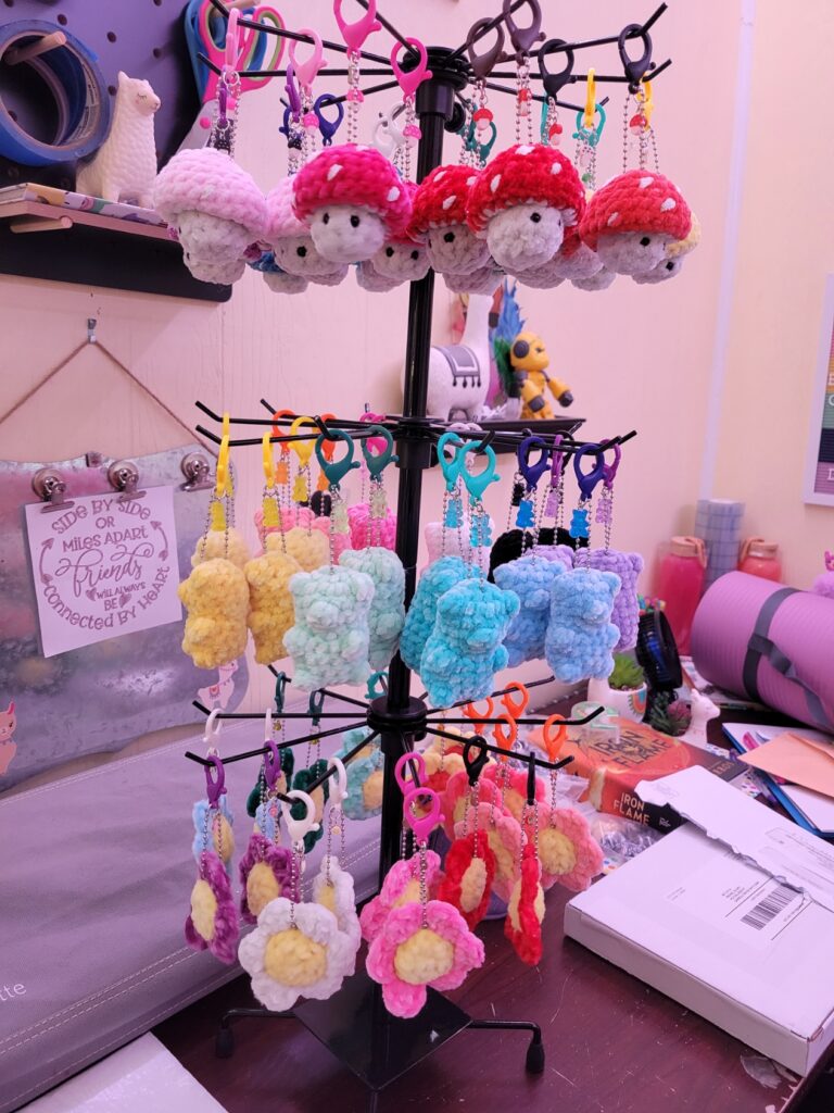I have been spending a good bit of my at home time working on crocheted items for the Art in the Garden craft show later this month. I hope we have beautiful weather and a great turnout for this event! If you happen to be in the Carroll County area on April 28th, stop by and see us! There are about 25 vendors that are participating, and I believe the Butter’ Dudder truck will be there as well. These keychains are the most recent thing I have been working on.